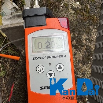 2社の水道屋さんに頼んだが、2社共はっきり場所が特定できなかった😥セカンドオピニオンでカンダイに依頼😣調査開始20分で漏水箇所を特定✌️水素式漏水調査で漏水箇所をピンポイント特定できました。