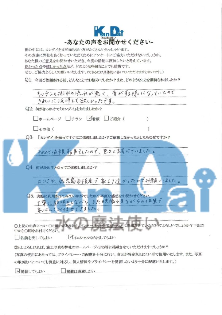 キッチンの排水の流れが悪く、音がする様になっていたので